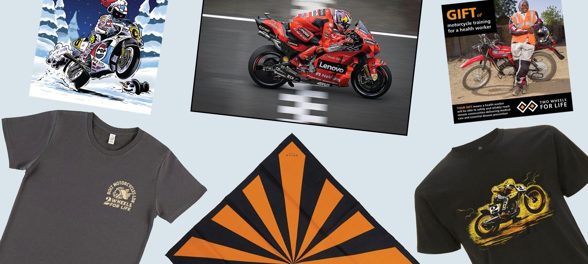Help us provide valuable funds to get healthcare to remote communities across Africa. This year we bring you gifts that motorcycle loving family and friends will love plus other ways you can support us this holiday season.
